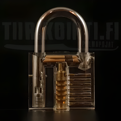 Tiirikointivälineet myydään erikseen. Lukon mukana tulee avain jolla lukon saa auki ilman tiirikointia. Emme suosittele käytettävän lukkoa muuhun kuin harjoitteluun.
